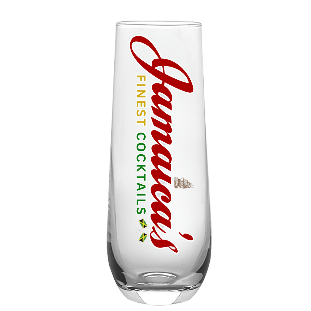 Glassware - Jamaica's Finest Stemless Flute Glass with Colored Logo