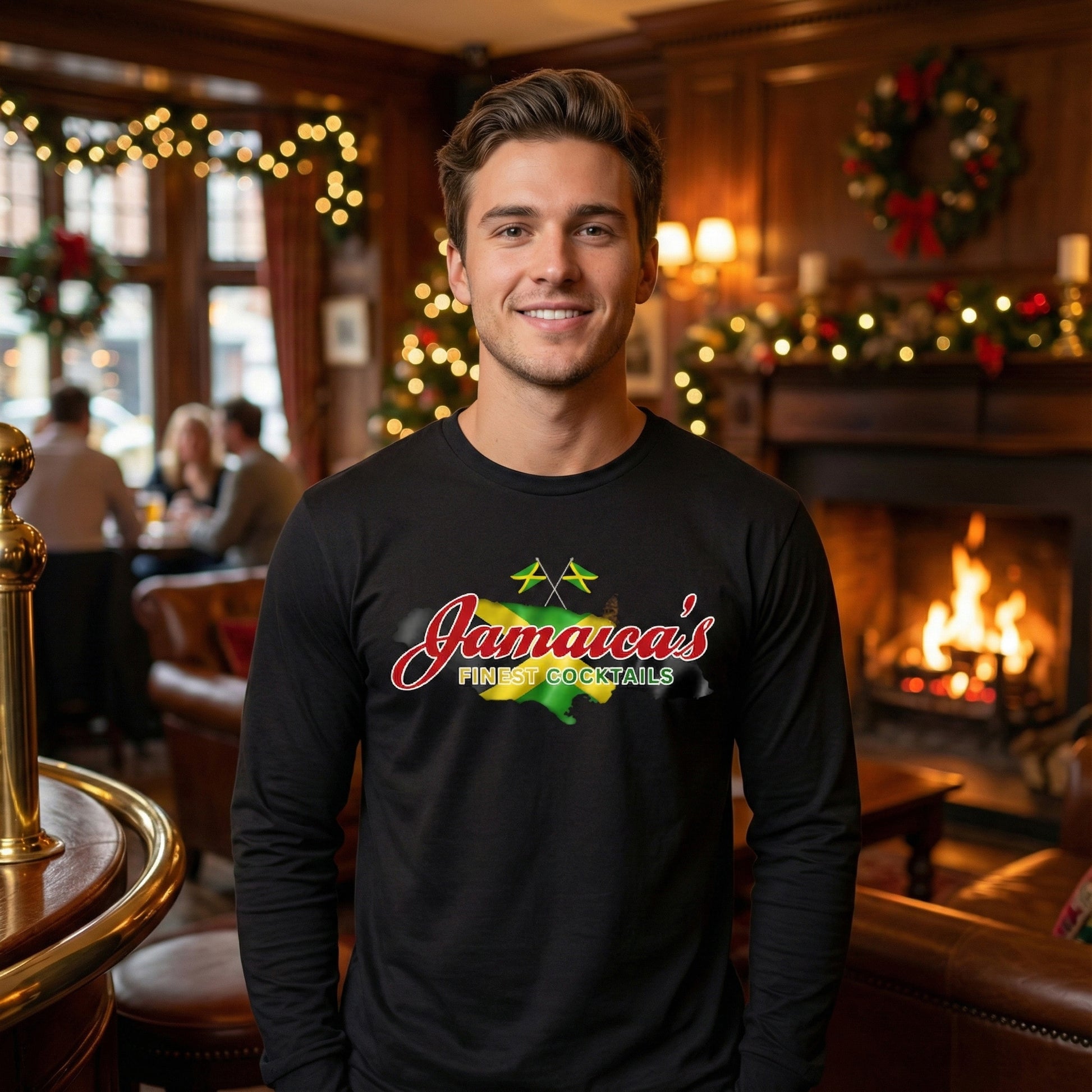 Crafted from substantial cotton with a vintage aesthetic, our Jamaica's Finest Logo long-sleeve tee features our striking logo positioned prominently on the chest. The tubular knit construction maintains a streamlined silhouette while the fabric's weight creates a substantial, lived-in drape reminiscent of a cherished wardrobe staple. Reinforced ribbed collar and taped shoulders ensure durability through repeated wear and laundering. The relaxed fit accommodates layering for versatile styling—equally suited to casual seaside settings, urban environments, or transitional weather. Ideal for those seeking to express Caribbean connection or curate a collection of meaningful travel pieces, this shirt delivers understated sophistication with authentic Jamaica's Finest Logo island-inspired design sensibility.